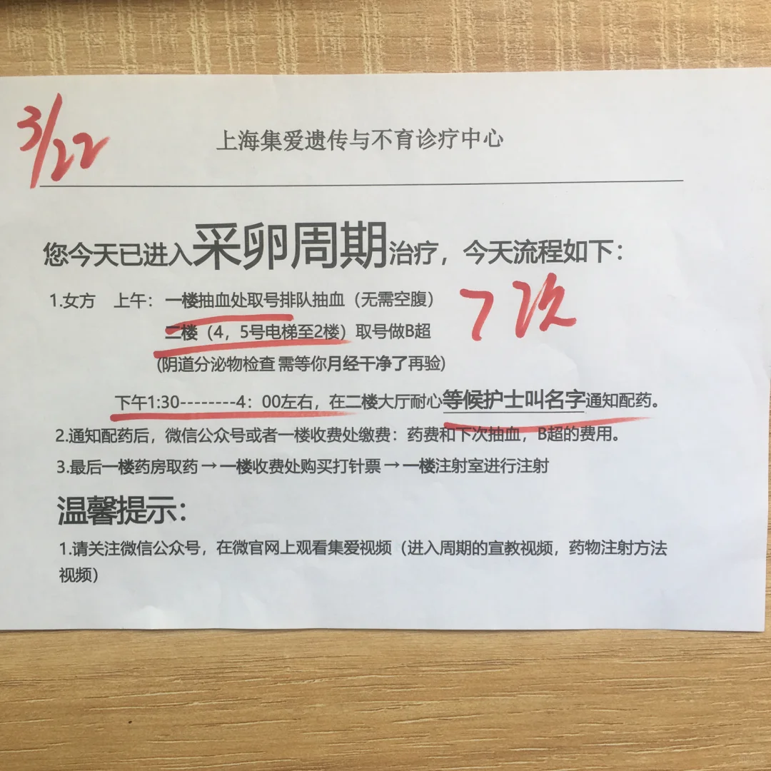 3月22日也是一早从嘉兴出发,开车又转地铁9:30分到的医院,这次可以在微信公众号上提前挂号,到医院后去二楼刷号排队就好,待诊35号,我排39号,但是医生去手术室了,等了快50分钟才来,医生来了以后很快到我们,一看所有检查齐了,直接定方案进周期促排,这效率太快了,完全没做好心理准备。